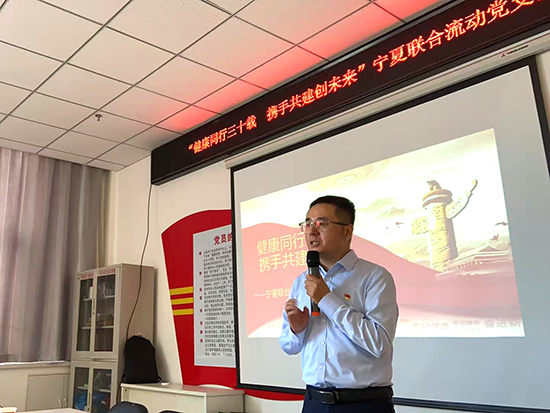 宁夏联合流动党支部书记任小龙呼吁大家学习闽宁精神,坚定理想信念,凝聚发展力量,做好健康事业的传播者与推动者,为建设“健康中国”建设作出更多贡献。