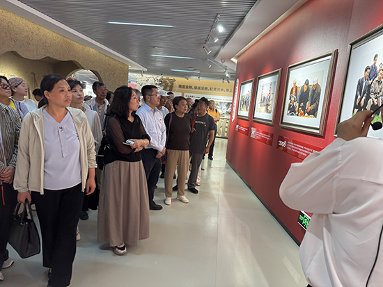 大家一起参观了闽宁新貌展示中心,一张张鲜活生动的图片重现了闽宁镇从无到有、从穷到富走向“全国脱贫攻坚楷模”的变迁,带给大家极大的触动。大家表示要学习闽宁人艰苦奋斗、自强不息、勇于创新的精神。