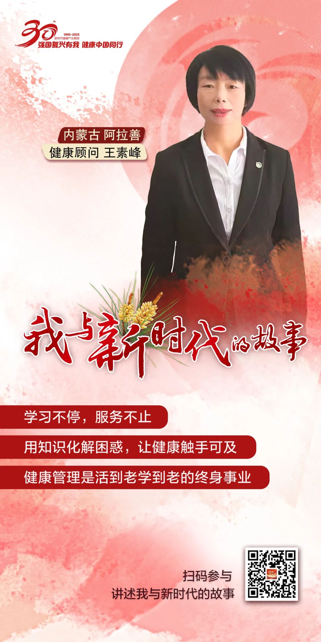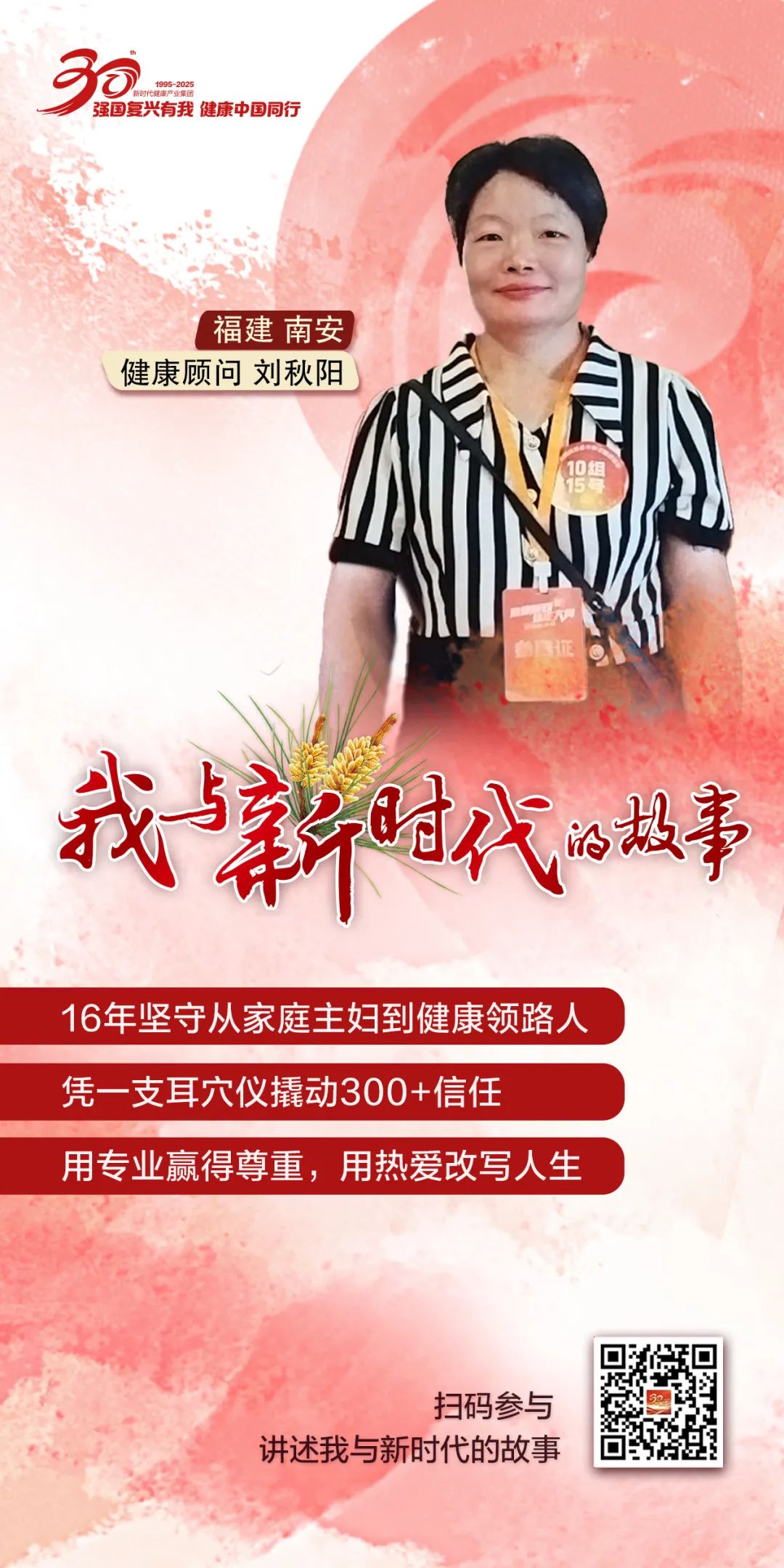 从2009年有缘认识松花粉,一脚走进新时代至今16年了。我从带三个娃的家庭主妇,成长为了健康顾问,参加了全国健康顾问技能大赛总决赛,并成功申请成为新时优品健康管理社区站负责人。