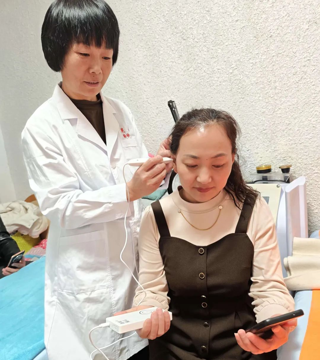 通过线上线下不断深入学习,我掌握了一个健康顾问必备的基本技能。带着耳穴仪和温阳罐,我一个人走进社区、走进工厂,为有需要的人做健康服务。
